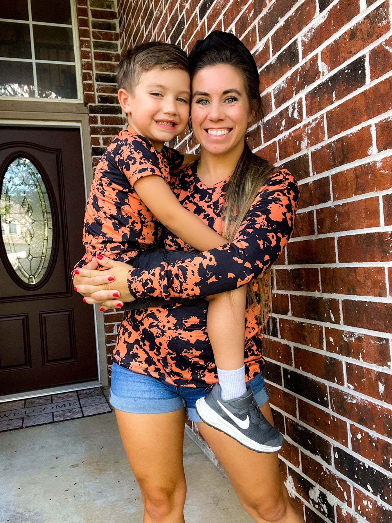 Halloween season is coming and Stacey is getting ready! These matching tops are beyond adorable and will work way past the holiday. She used a print from our Designer Studios that was so ideal for mom and son looks!