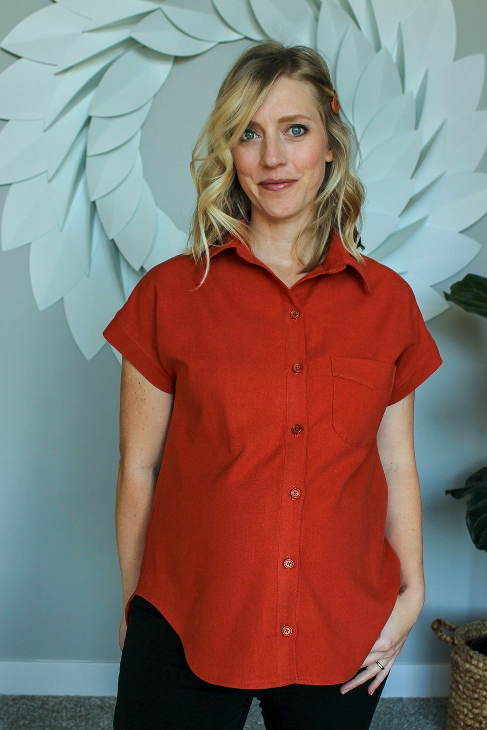 The boatneck neckline is so flattering and the bishop sleeves are so dreamy! I added a little volume to these sleeves because I wanted them to be extra puffy at the bottom. At the hem, I really wanted a subtle asymmetrical side-split, so I changed up the bottom of the pattern to get just what I wanted. I used Solid Charcoal French Terry for the cuffs as well as an optional sash! I really love flowy tops, which is why I mashed the Rebekah with the Tennessee, but I also like adding a coordinating sash to a top or dress sometimes to really define the waist!