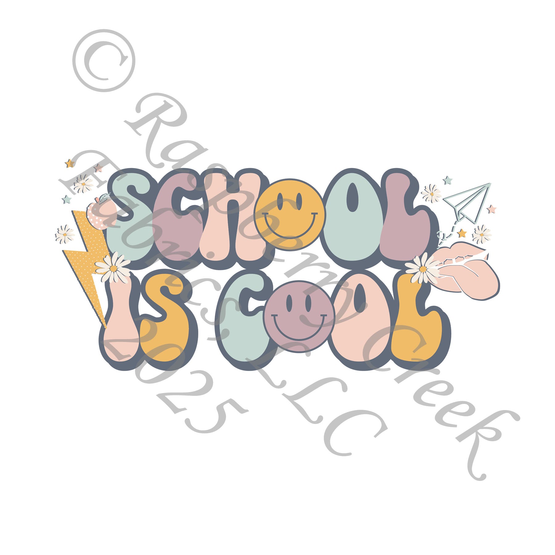 Mustard Peach Pink Dusty Purple and Steel Blue School Is Cool Panel, School is Cool by Kim Henrie for CLUB Fabrics