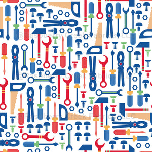 This deign is dedicated to children. It was created for clothing and bedroom linen. It is a funny pattern, and rapresents the little mechanic, the child's play with screwdriver, hammer, pliers, screws