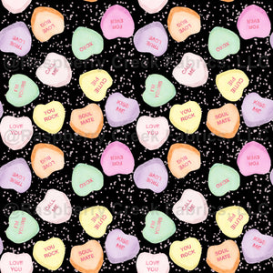 conversation hearts, candy, valentines day, black, watercolor, love, black, pink, sweets