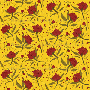Gorgeous and bright! Red hibiscus blooms on a canary yellow background. Maximalism at its finest!