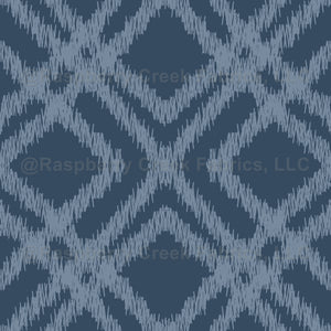 Ikat style diamond design with overlapping shapes in shades of blue. Denim look blue Ikat repeat. Home Decor, accessories, wallpaper, fabric, interior design