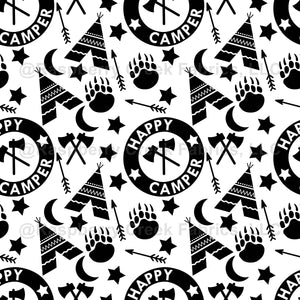 "Monochrome Happy Camper" is a charming seamless pattern featuring cheerful camper van illustrations in various shades of a single color. This design radiates a sense of adventure and positivity, making it an ideal choice for projects that embrace a love for travel, camping, and the open road.