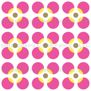 Bold Pink and Yellow Floral Motifs Intertwined with Muted Green Accents on a Clean White Backdrop