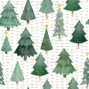 Tonal Hunter Green Khaki and Gold Christmas Tree Print Fabric, Woodland Christmas By Brittney Laidlaw