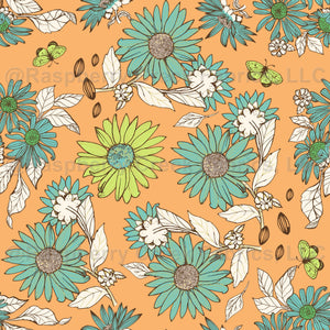 Aris's Garden Mermaid - Summer, Fall Sunflowers Aqua and Orange