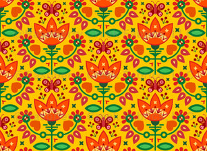 Artsy Folk Flowers With Butterflies. Stylized folk art flowers and leaves with hearts and butterflies and other nature's elements in Scandinavian style.