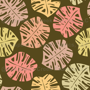 Autumn Monstera Toss on Green Fabric