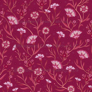 Elegant floral pattern on a burgundy background.