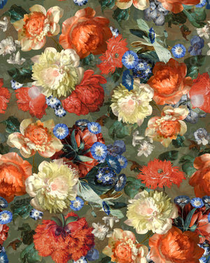 historical Dutch and European famous painters, such as hand painted roses, poppies, tulips, peonies and branches on a night