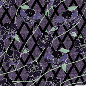 Morning Glory Flowers on Trellis Deep Purple Fabric