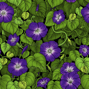 Hand-painted vector pattern with purple morning glory