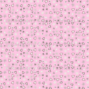 White hearts and flowers scattered on a slipper pink background and outlined in shades of pink and mauve. Features Cloud Dancer white - the Pantone Color of the Year for 2026.