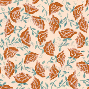 Scattered roses earth tone and terra cotta on pinky cream, floral fabric for dresses, shirts, girls outfit, underwear and sweater, country style for spring and summer.