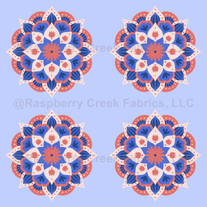 Floral Mandala - blue and coral