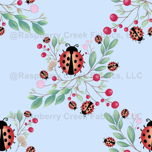 Ladybirds and Berries on Light Blue - Wallpaper