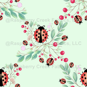 Ladybirds and Berries on Light Green - Wallpaper