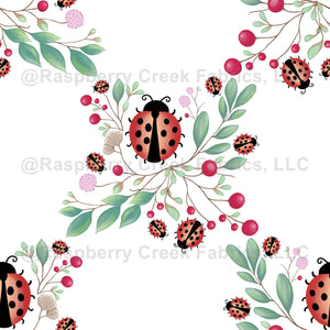 Ladybirds and Berries on White - Wallpaper