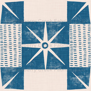 Retro Starburst Quilt Block – Minimalist Mid Century Denim Blue Wallpaper
