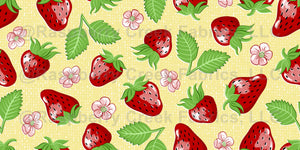 Strawberries and Blossoms on Yellow Wallpaper - Hand Painted Strawberry Fruit Floral