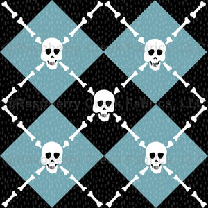 Argyle, Halloween, textured, modern, skulls, skull and bones, bones, blue, black, fall, kids, men, hand drawn