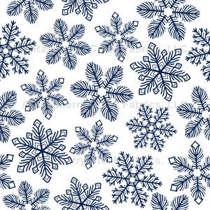 Snowflakes pattern. Seamless pattern with fluffy white snowflakes on blue background.