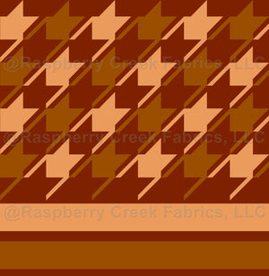 Brown and beige houndstooth and stripes, against a warm brown background.