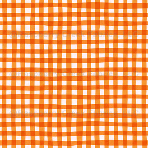 Hand-drawn Gingham plaid stripes in brownish orange color on light misty rose off white background.