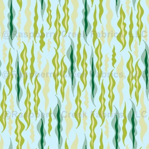 Paisley Party Ocean Collection, seaweed plants on a sea foam background.