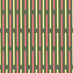 A coordinating Easter pattern design featuring pastel yellow and pink broken stripes on an olive green background.
