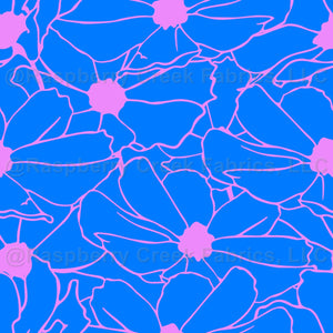 Cosmos silhouettes in bloom. Perfect for home decor, apparel, appliqué, quilting, and much more. This design is Florian in Blue (A) from the collection, Highland Garden.