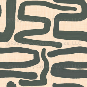 Abstract Retro Maze – Mid Century Modern Lines Green features a flowing, maze-inspired design in a soft retro green. With curving mid-century modern lines and vintage-inspired structure, this print adds both movement and calm to your sewing projects.