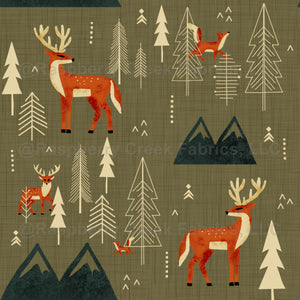 Cabincore Forest Woodland Wildlife - Rustic Trees Deer Foxes Olive