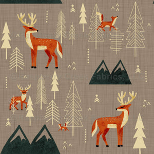 Cabincore Forest Woodland Wildlife - Rustic Trees Deer Foxes Taupe