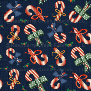 Preppy festive Christmas design featuring candy canes and bows in classic holiday colors. Perfect for elegant holiday decor and Table top, pijamas.