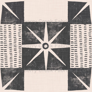 Retro Starburst Quilt Block – Minimalist Mid Century Charcoal wallpaper brings bold mid-century style to your walls with its graphic starburst motif and abstract quilt block structure. The textured charcoal print against a soft background creates a striking, vintage-modern look with depth and personality.