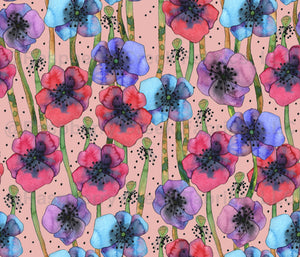 Multicolored anemone flowers and seeds on pink background. Watercolor hand painted
