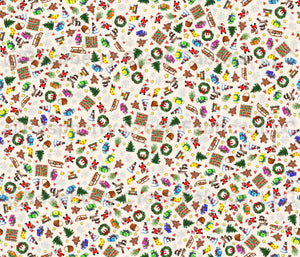Ditsy Christmas ornaments, non directional. Cream colour background