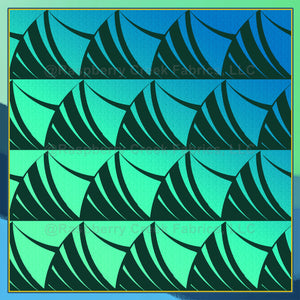 Bright greens and blues featured in the geometrical design intended to induce pleasant thoughts of sailboats on lakes.