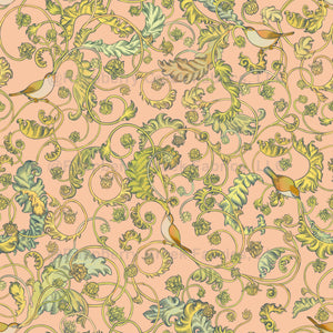 vintage whimsical birds and leaves and flower buds