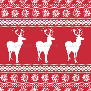 Ugly Christmas Sweater, Snowflakes, Deer, Reindeer, Red