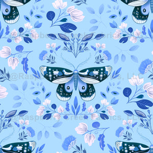 Enchanted Nocturne Blue Moth on Light Blue Wallpaper