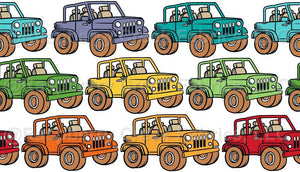 4x4 Adventures Off Road All Terrain Vehicles Colorful Cars on White