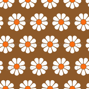 Simple retro flower in brown and pumpkin orange.