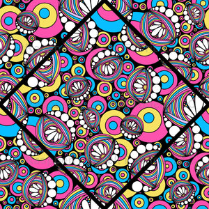 Enjoy geometric elegance with colorful 80s vibes in this diamond tile pattern using our 80s Aerobics Rainbow Daisy Doodle design.