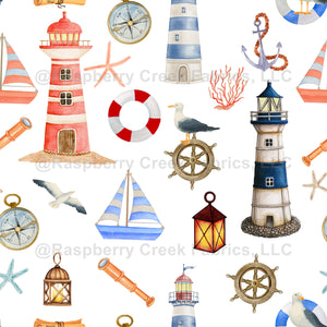 Coastal Collection: Nautical Motifs Lighthouse And Sailboats