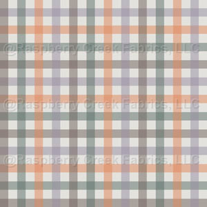 A Non-Traditional Plaid in Muted Earth Tone Colors of Lavender, Peach, Mocha Brown, and Teal Green on a White Background
