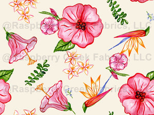 Living on Madeira surrounded by lush plants and tile façades sparked this vibrant fusion. Hibiscus, bird of paradise, and frangipani come together in a hand-painted design – perfect for textiles, resort wear, and accessories. Reds colors of flowers wrapped in the warmth of the sun.