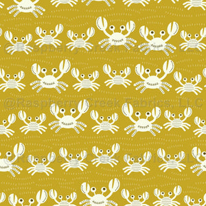 A Trip to the Beach | Marching Crabs - Off White on Mustard Brown